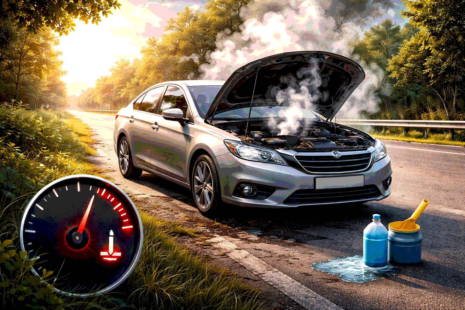 Как только увидели красную зону или пар — включайте аварийку и ищите место для остановки. Не нужно «доехать до сервиса» — каждая дополнительная минута работы перегретого мотора кратно увеличивает ущерб.